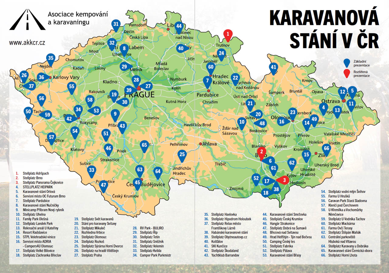 Asociace kempování a karavaningu, z. s. pro českou karavanistickou veřejnost pravidelně vydává tištěného průvodce „Karavanová stání v ČR“. Zde najdete informace o aktuální verzi tohoto katalogu.