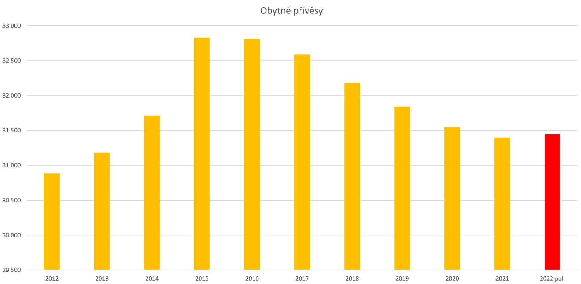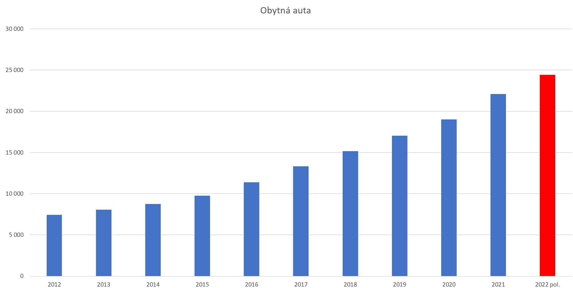 V prvním pololetí roku 2022 se počet vozidel, registrovaných jako obytná v Registru silničních vozidel, zvýšil o 2.371 na 55.855 . Jedná se o podstatný nárůst registrací, pro porovnání, v prvním pololetí rekordního roku 2021 byl zaznamenán nárůst „jen“ o 2.051 vozidel.